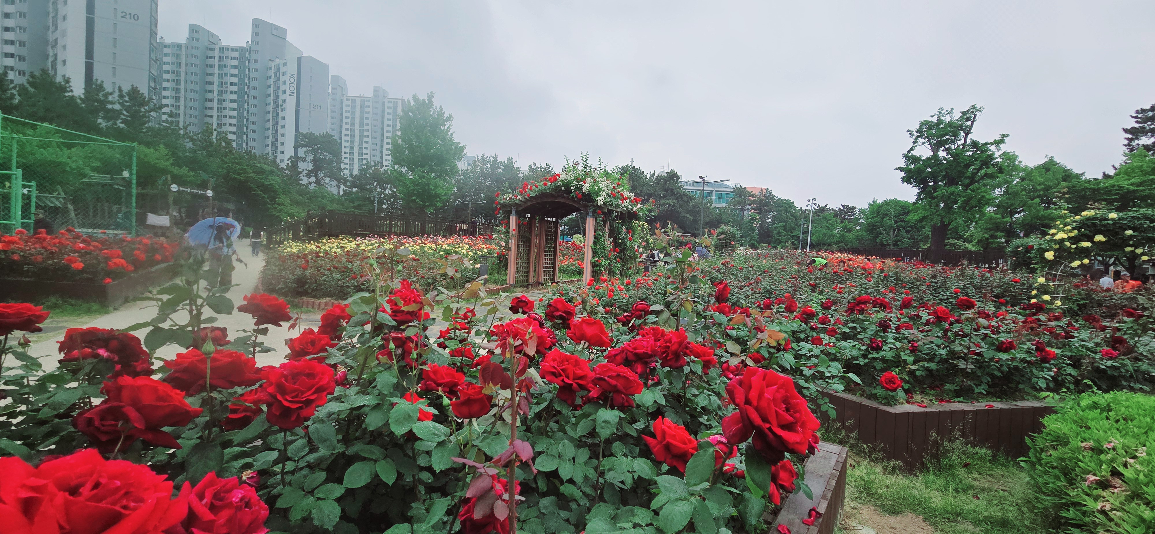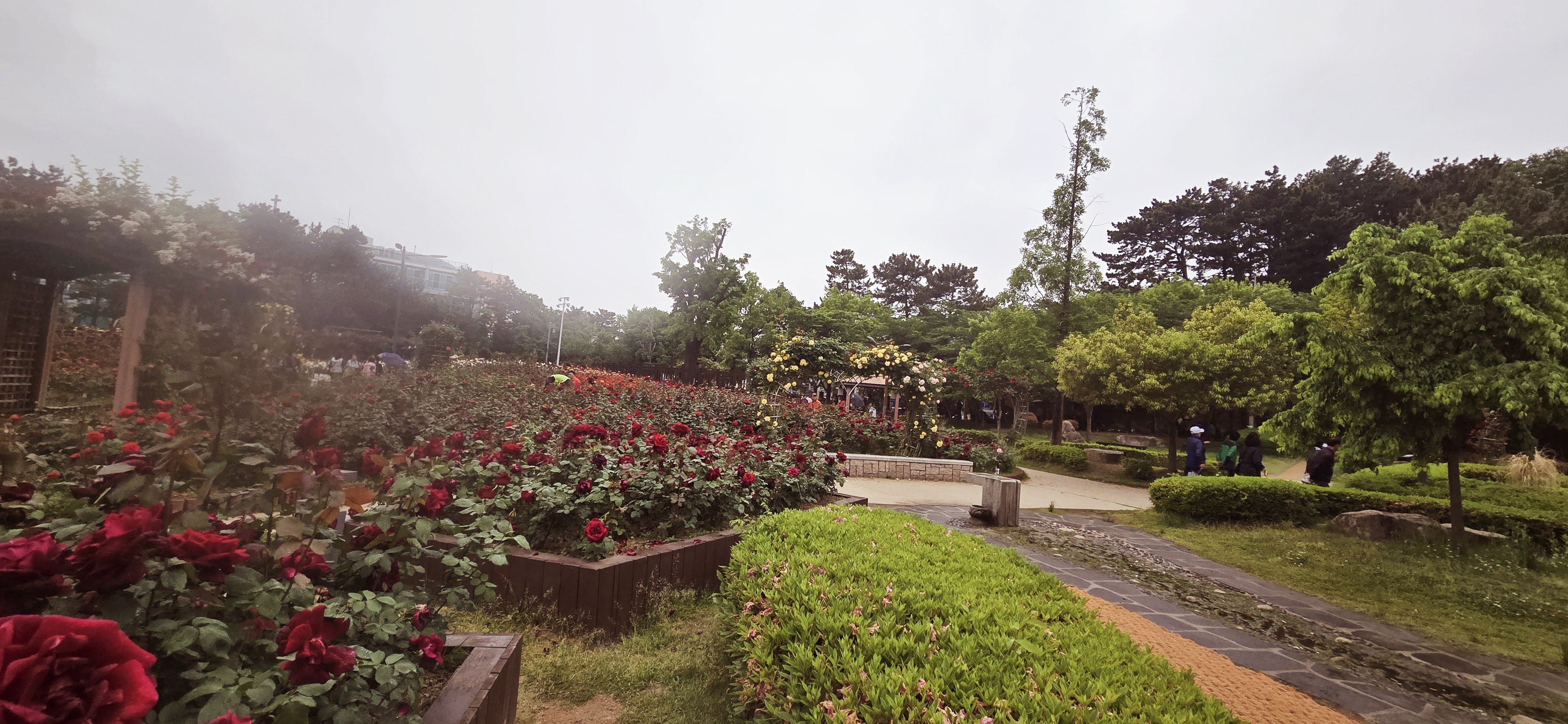 울산 장미원보다 규모는 훨 작지만 조금은 젖은 땅 밟으며 구름이 와 여러 바퀴 돌고 나서