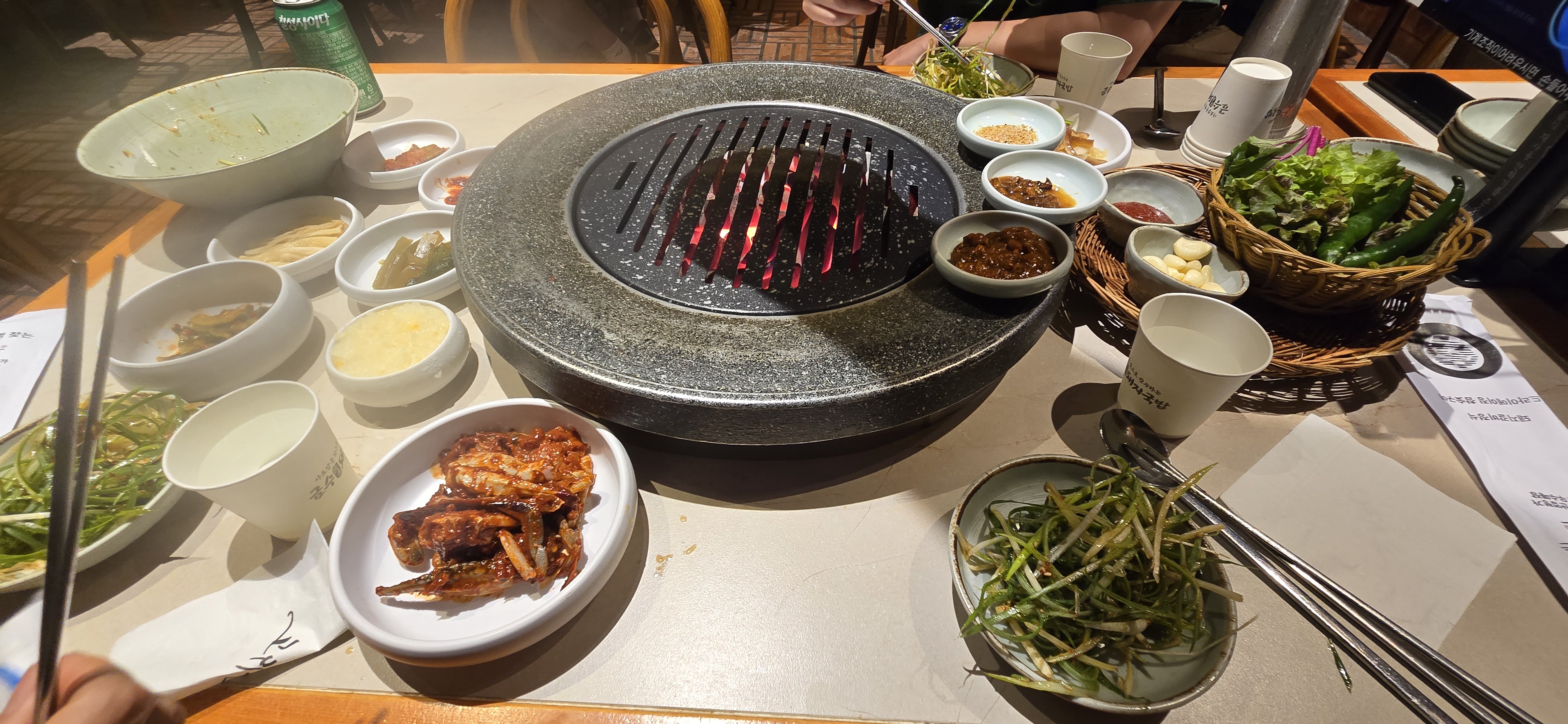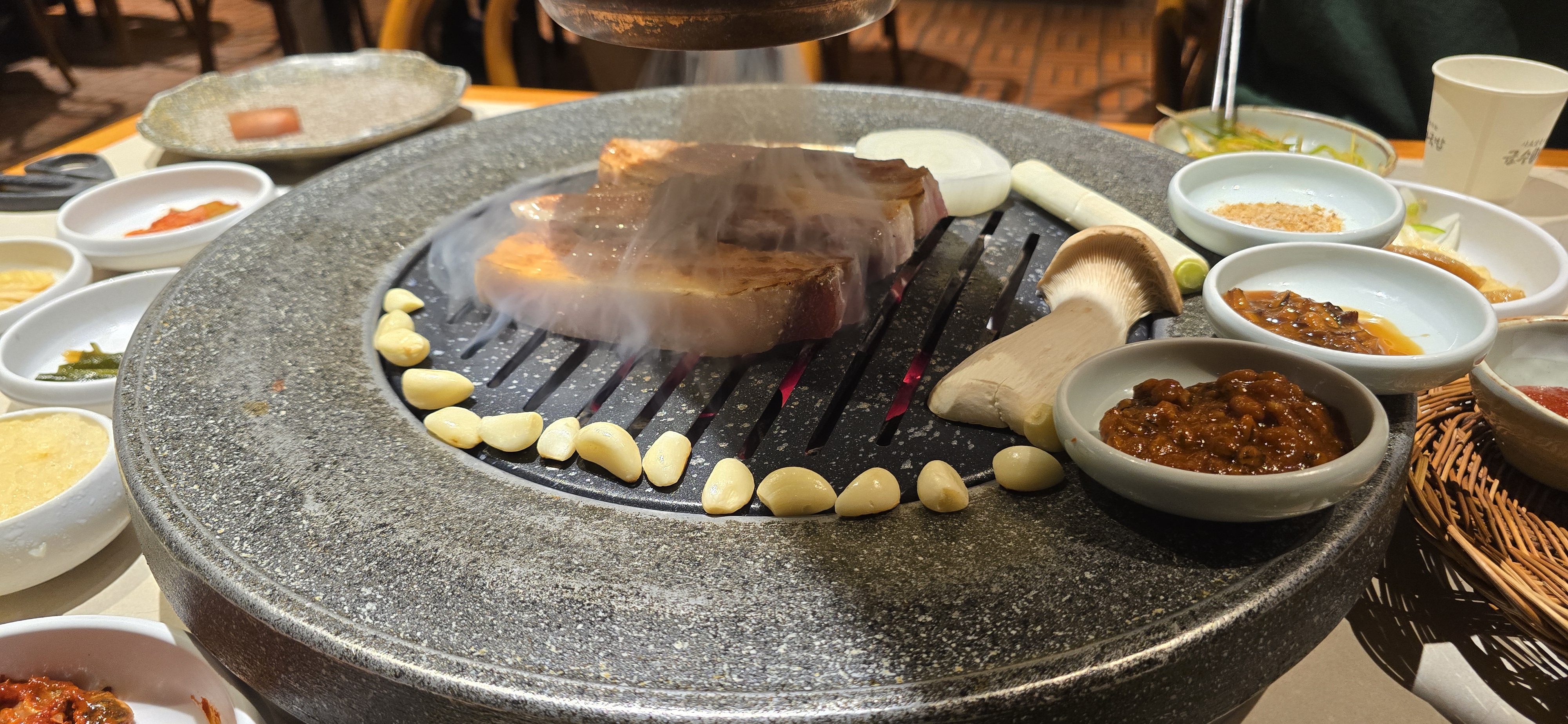 삼겹살 구워서 된장식사를 하였다.